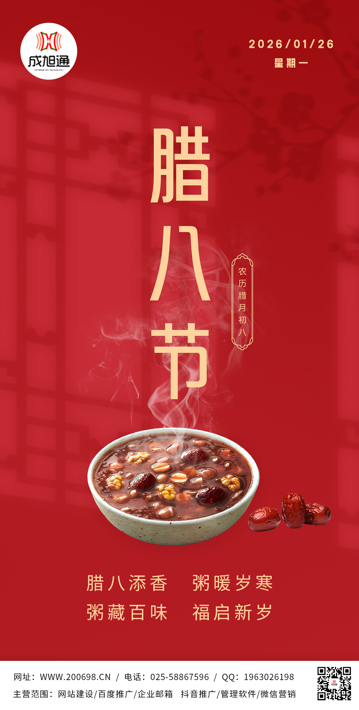 食材搭配对了粥才香,企业宣传找对方法,客户才多!成旭通的网站设计 + 网络营销组合拳,帮你打通线上获客渠道,让陌生客户主动来找你合作!还仅靠线下跑业务?太费时间了!评论区扣【引流】,教你线上获客新玩法!免费一对一咨询定制方案!看完别忘关注,还有更多营销干货等你来分享,还在为没客户发愁吗?